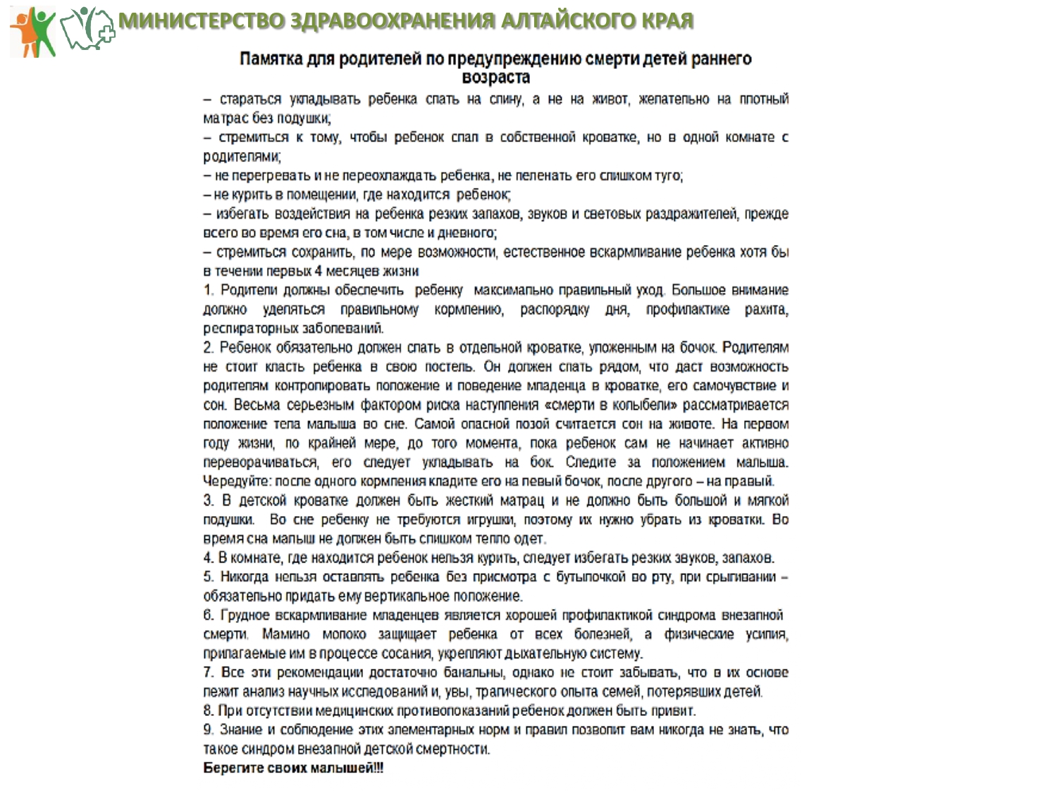 Памятки по уходу за новорожденным